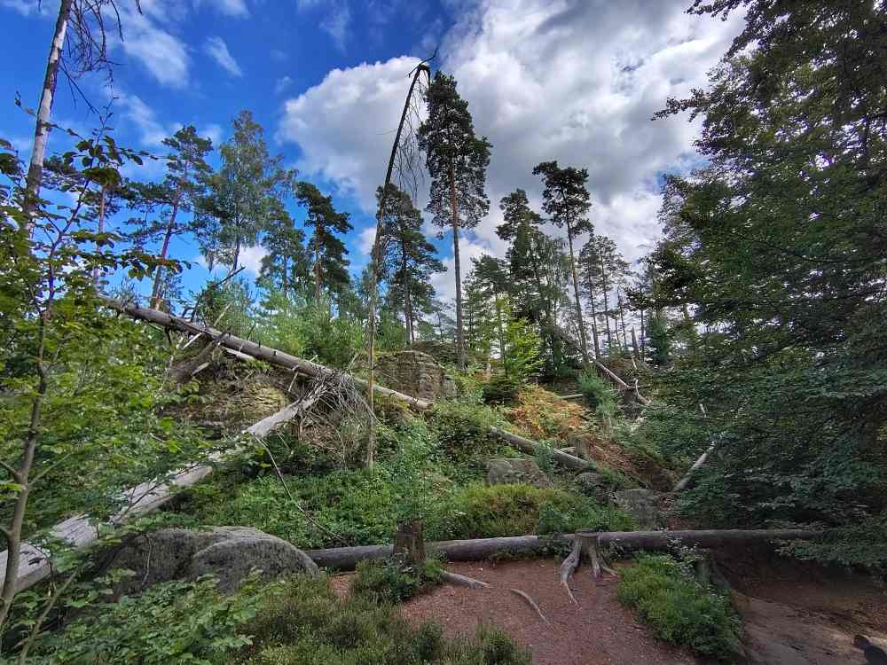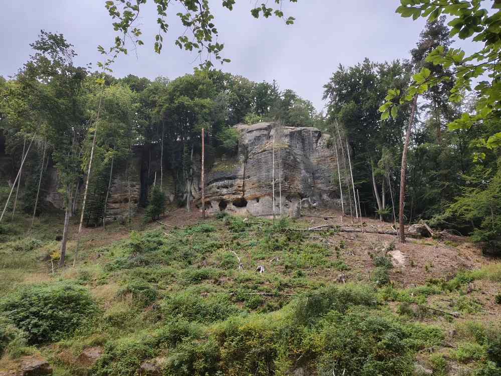 Tohle místo je skvělé nejen proto, že je jako jedno z mála mimo všudypřítomné CHKO, ale taky kvůli tomu, že nedaleko je poutní místo Kalvárie, kam se chystáme zítra. A pak už pojedeme směrem České Švýcarsko.