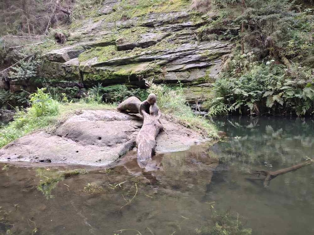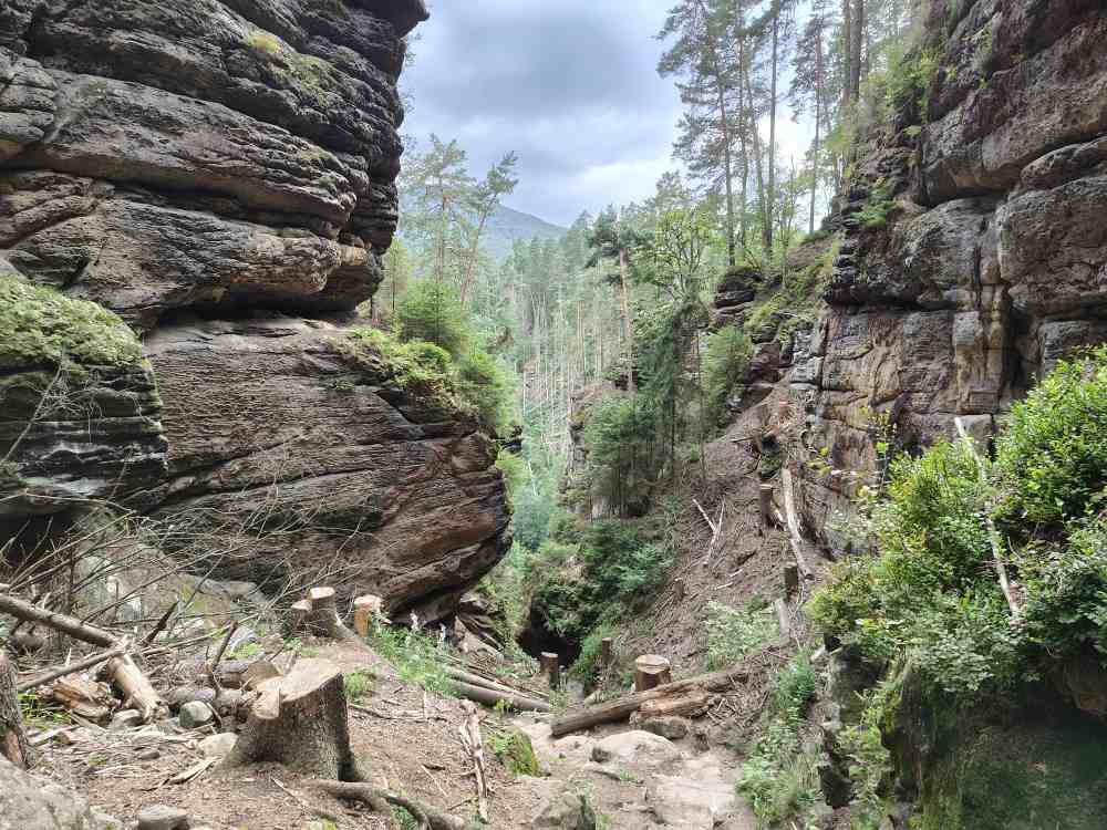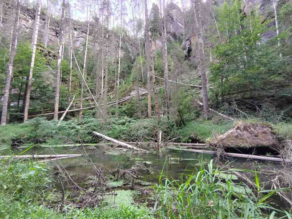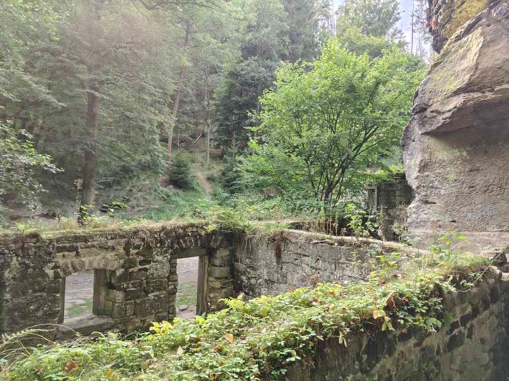 Pak jsme dorazili na parkoviště nedaleko Jetřichovic (Vysoká Lípa) a šli se podívat roklí dolů na zříceninu Dolského mlýna.
