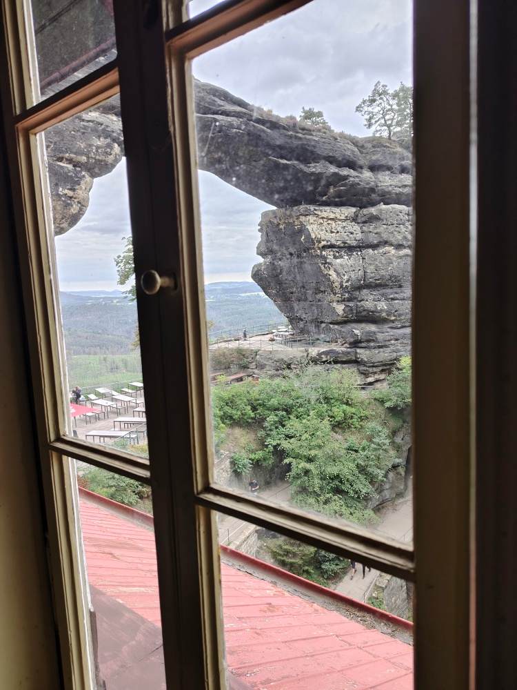 Pak následoval přejezd do Jetřichovic, kde jsme si našli placené parkování u jednoho pána na zahradě. Vyrazili jsme na trasu přes Mariinu vyhlídku a Vilemíninu stěnu po červené značce, zpět pak po zelené – mnohem pozvolnější a pohodovější cestou.